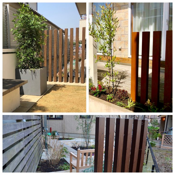 高さや角柱間の隙間はご希望の度合いに応じて自由に決められますので(限度はありますが)、お庭の植物や構造物などとうまく組み合わせるとさりげない目隠しとなるでしょう。