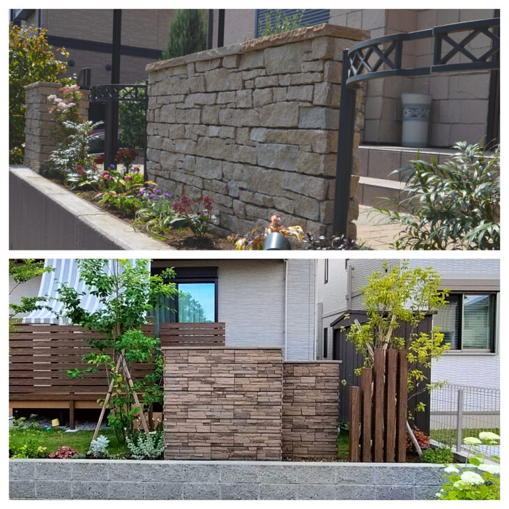 石積みや石積み調の壁の利点は、豪華で高級感のある見た目です。自然の風合いを取り入れたデザインは、庭の雰囲気を引き立てます。また、耐久性があり、汚れも目立ちにくく、風雨にも強いのが特徴です。