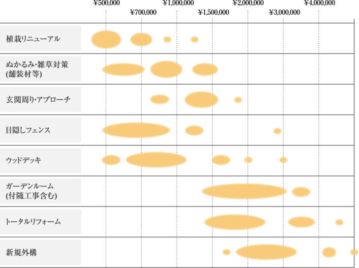 お庭のリフォームは、規模によって費用が大きく変わります。