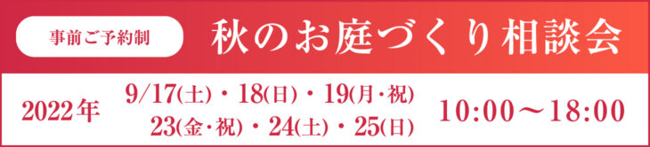 9月後半の2回の3連休(9/17・18・19)(9/23・24・25)は、「お庭づくりの相談会」を開催します。