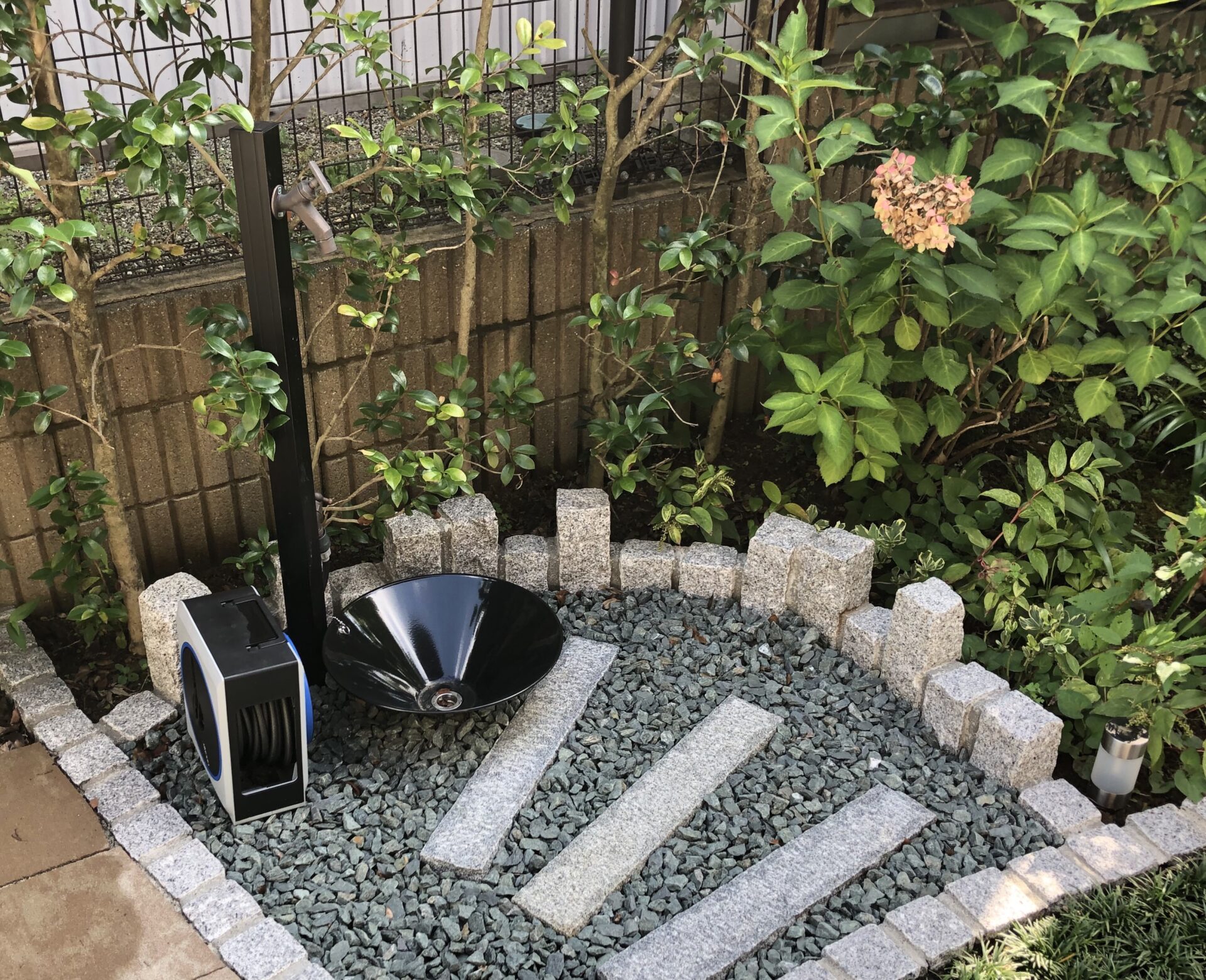 立水栓をワンポイントに、機能性もアップ投稿日:2019年7月23日春先に仕上げさせて頂いたお庭の見回りに^ ^和室前のスポットを和風に仕立て、立水栓の位置も元々の場所から移設し、器具類も雰囲気に合わせ見映え良くリニューアル。ホース用の補助蛇口も付いているので使い勝手も◎なんですよ(^^)夏の水遣りは大変ですからね。少しでも楽に、楽しくやっていただけるように水栓まわりも良く考えてご提案しています(#^.^#)