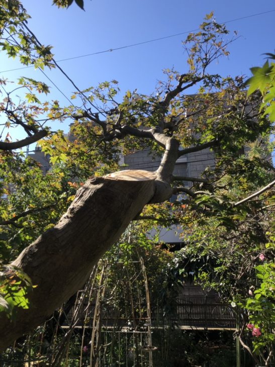 大きなモミジ、枝分かれのところが菌でコブができ虫も入っているようでした。