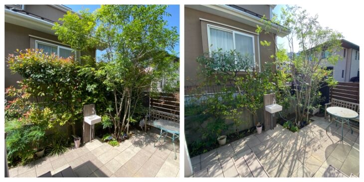 剪定後は風や光が通るようになり、居心地良い空間になりました。