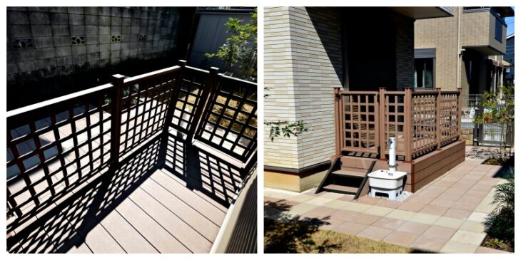 ウッドデッキのサイズ感投稿日:2021年5月12日「ウッドデッキは出来るだけ広く作りたい」とご要望をいただくことが多くあります。でも、一般の住宅地で舞台のような広いデッキで落ち着いて過ごすことは。。。難しいですよね。デッキはお部屋とお庭の「つなぎ」と考え、庭面を広くとって過ごすほうが安心で楽しめるようです。また、見た目にも空間に余裕が出ます。お客様の、今と将来のライフスタイルをイメージしてちょうどいいサイズ感を見つけてみて下さいね^ ^