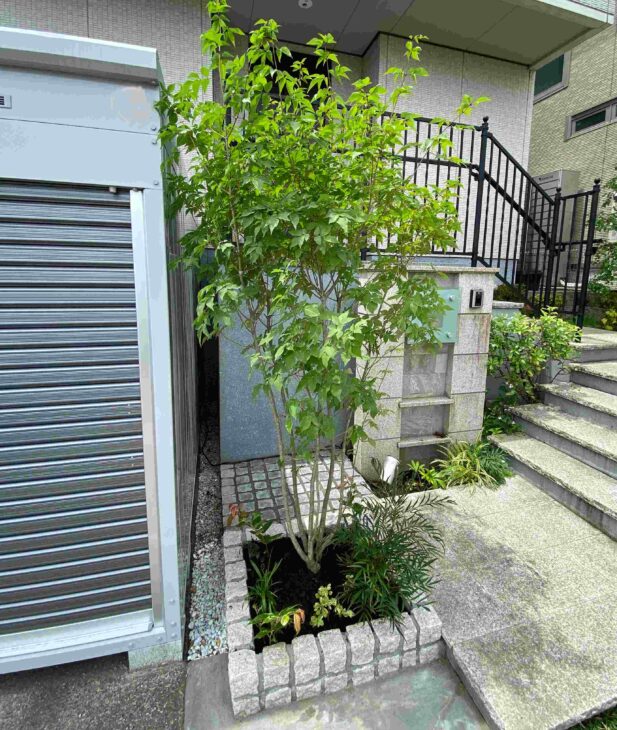 シンボルツリー祭り その2投稿日:2021年6月1日お次は「アオダモ 」。野球のバットにも使われるほどの、柔軟かつ硬い幹を持つ樹です(落葉です)。軽やかな薄い葉っぱや、褐色の幹を楽しめます。こういう自然樹形のシンボルツリーがあると、それだけで優しい自然の雰囲気を作ってくれますね^ ^
