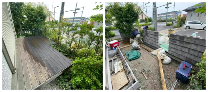 ウッドデッキのお庭をリフォーム投稿日:2021年7月7日ウッドデッキの老朽化に伴い、居心地良く使いやすいお庭へのリフォームがスタート。既存の樹木もできるだけ残し、ホッとできるプライベート空間が出来上がる予定です^ ^