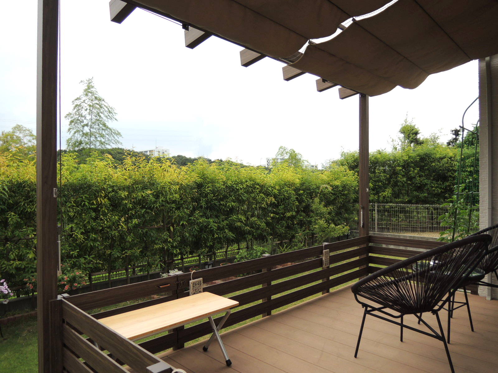 デッキに出ても落ち着かなかったのであまり使っていませんでしたが、犬を飼うようになり、デッキで心配なく遊ばせたいと思い相談しました。日除けが窓辺の強い日差しを遮ってくれたり、小雨でもデッキに出られたりと、思い通りの仕上がりで満足しています。