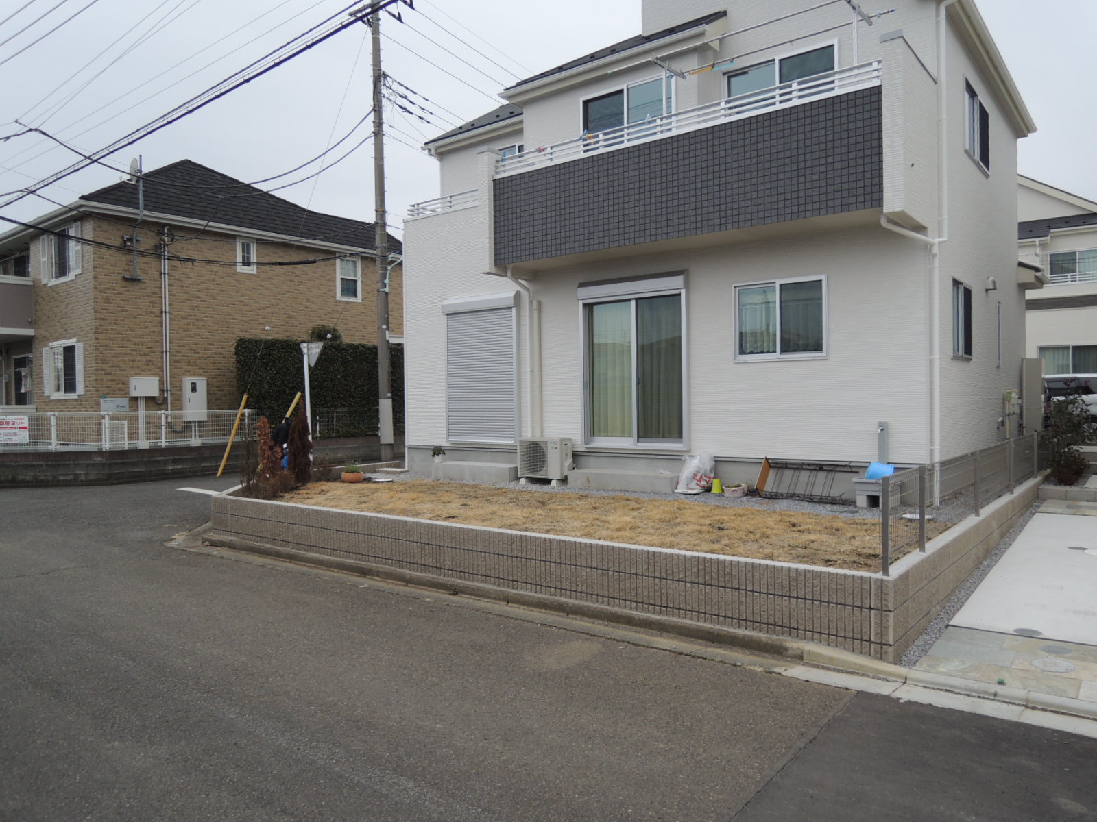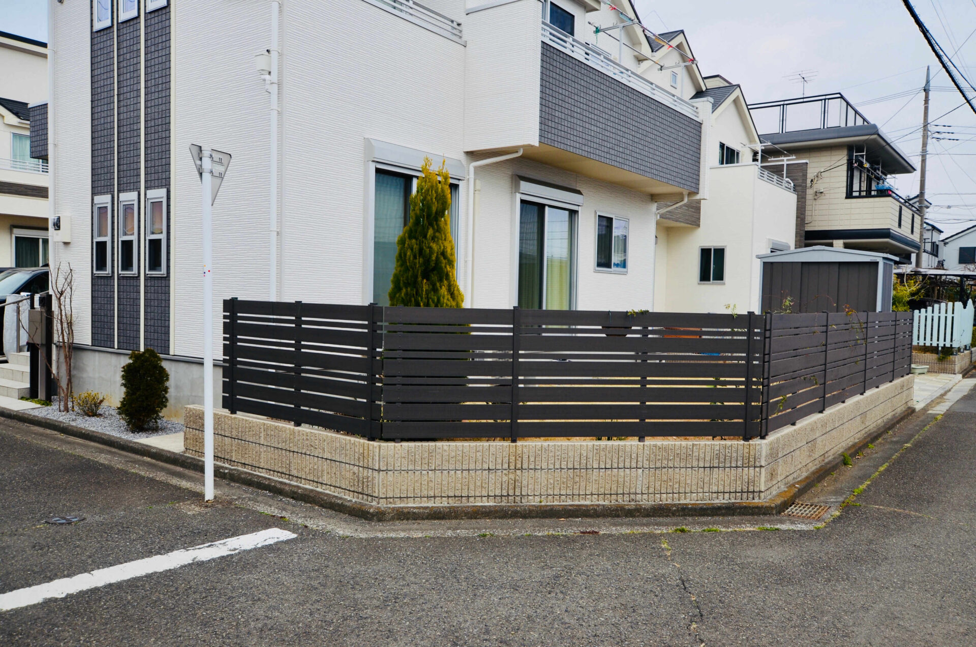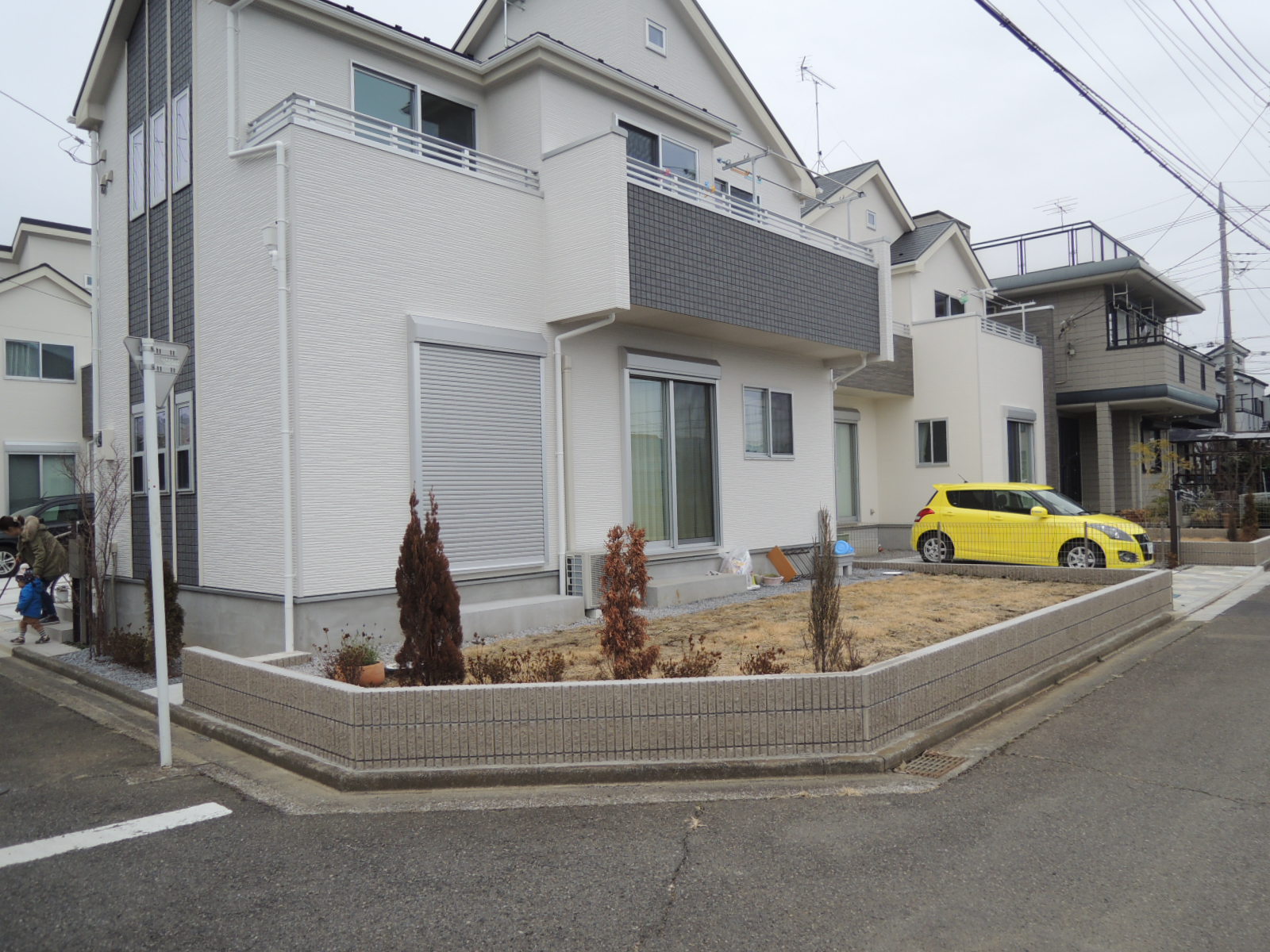 お客様はご新築時にあえてフェンスを設けず、しばらくの間どんなタイプが良いか検討されていました。お庭での居心地、道路の通行人や車がどんな風に見えるか・・・など、できればそのように腰をすえて確かめながら検討するのがベストですね(全ての方ができる訳ではないと思いますが)。ご新築外構で迷われていらっしゃる場合、そうおすすめする場合もあります。