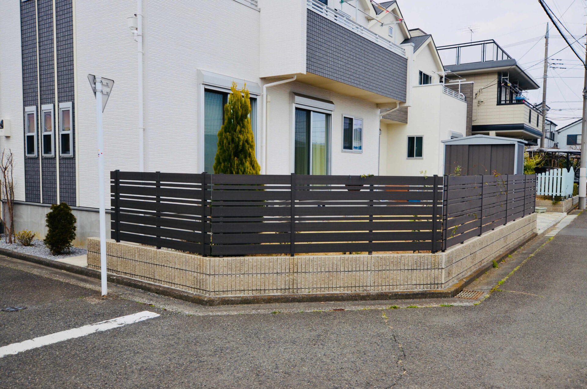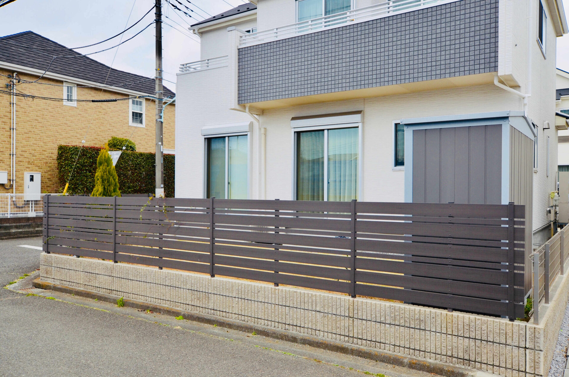 既存ブロックの上に、木目調の樹脂製目隠しフェンスを施工させて頂きました。