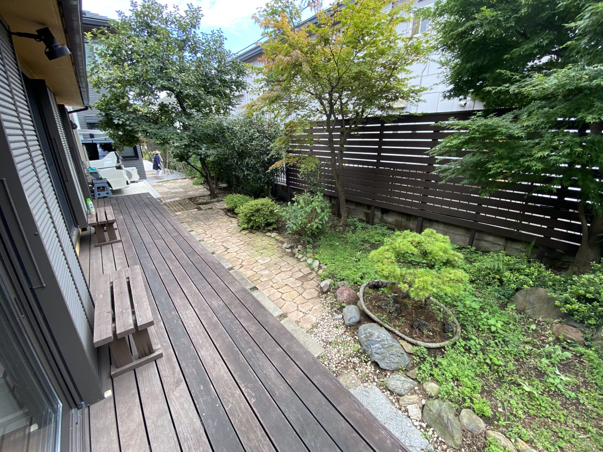 先代からの和風のお庭は見て楽しむ空間でしたが、家族構成やライフスタイルの変化でフラットで広々とした、プライベートが守られる空間に変えたい、というのがご希望でした。