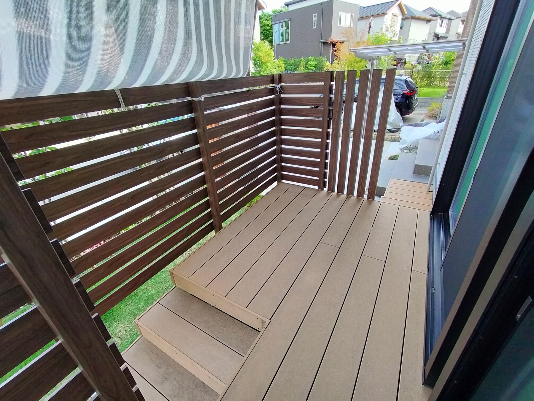 既存のウッドデッキ周りに、適度な高さのフェンスを設置し、プライバシーを確保しました。