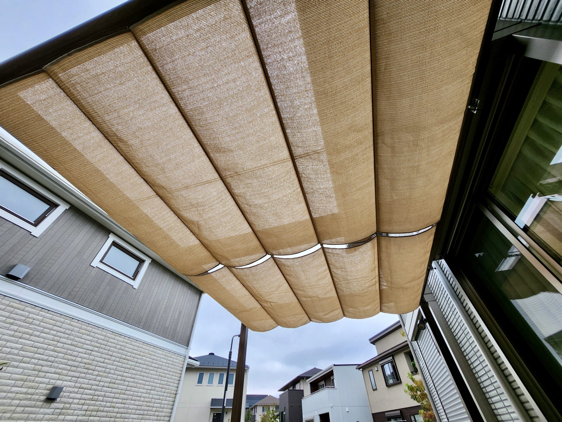 これにより、日差しの強い日でも心地よく過ごせる環境が整いました。ロープ式でシェードを出し入れできるので、天気に合わせて便利に使っていただけます。